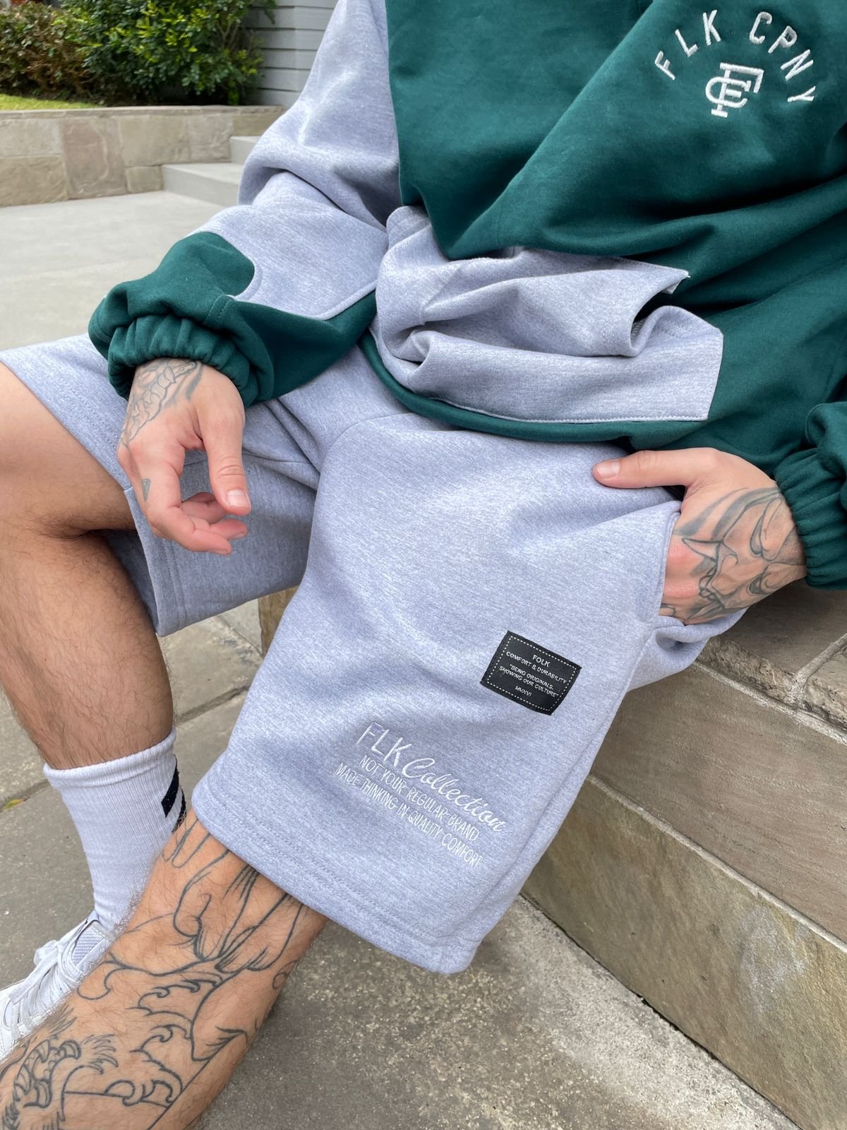 Shorts en Franela reactiva Pasadores Punta de metal Diseño en bordado
